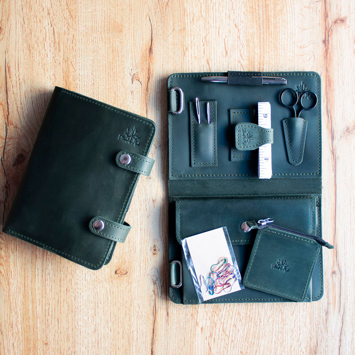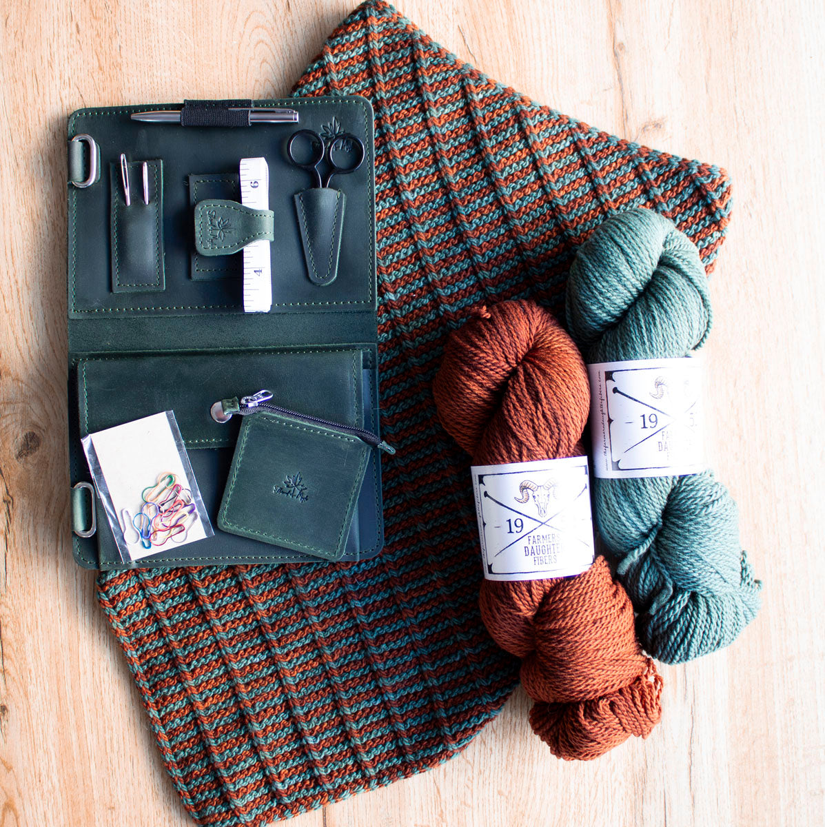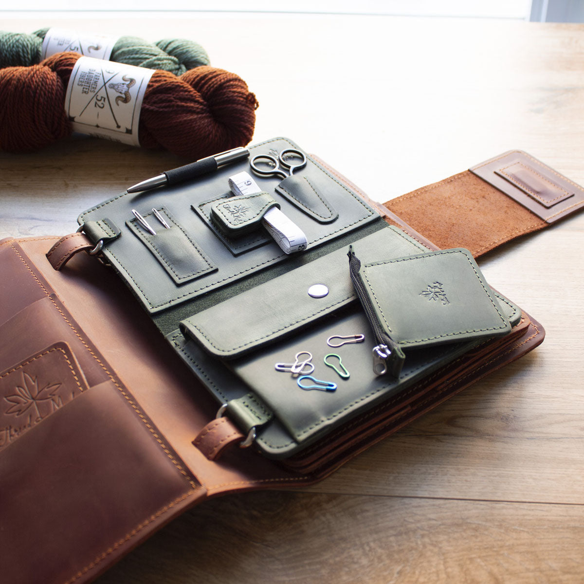 As part of this initiative, we're thrilled to debut our new Notions Page in Andrea's favorite colour: hunter green. It is like a mini Notions Clutch, designed to store your essential tools. Slip it into your Needle Binder to keep your notions together with your needle collection, or fold and snap it closed to take on the go as a standalone carrying case.