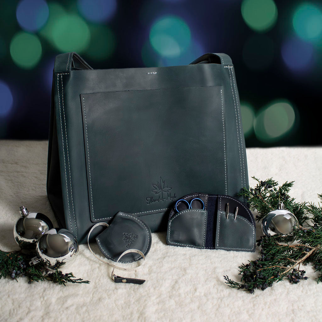 It features a clever yarn-through tab at the zipper mouth, allowing yarn to glide freely without snagging.