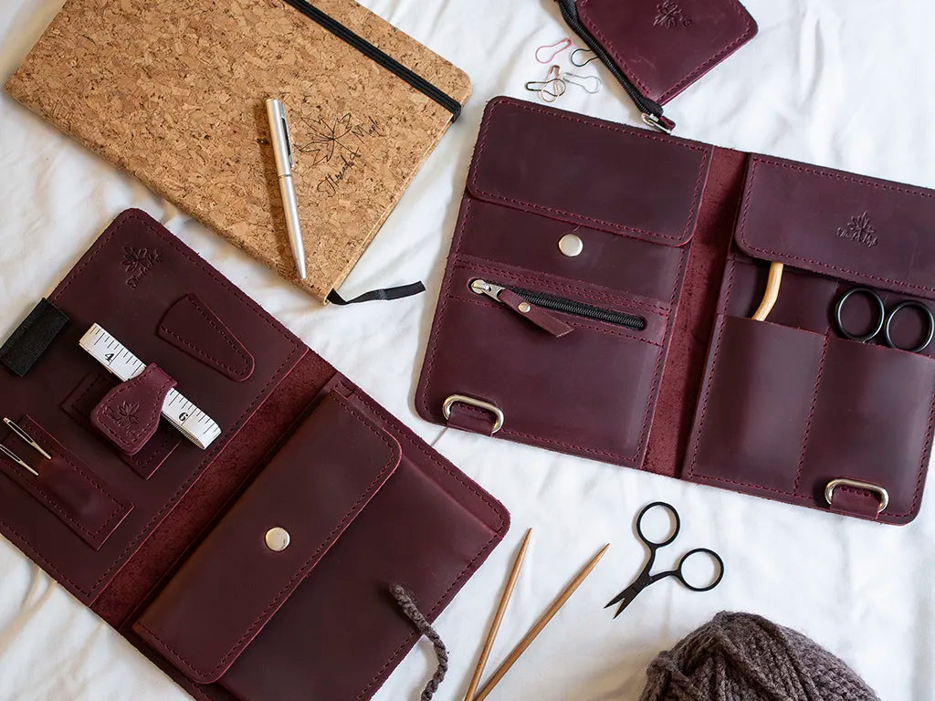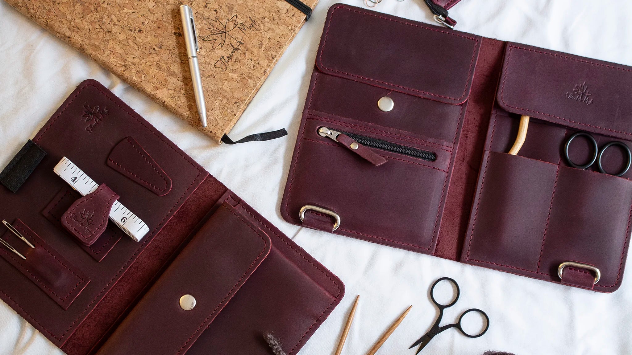 Beautiful accessories designed to help you craft your comfort in style. Artisan-crafted leather from Ukraine, Portuguese sustainable cork, handwoven Turkish baskets, Canadian maple wood accessories, and more, to enhance your crafting journey.