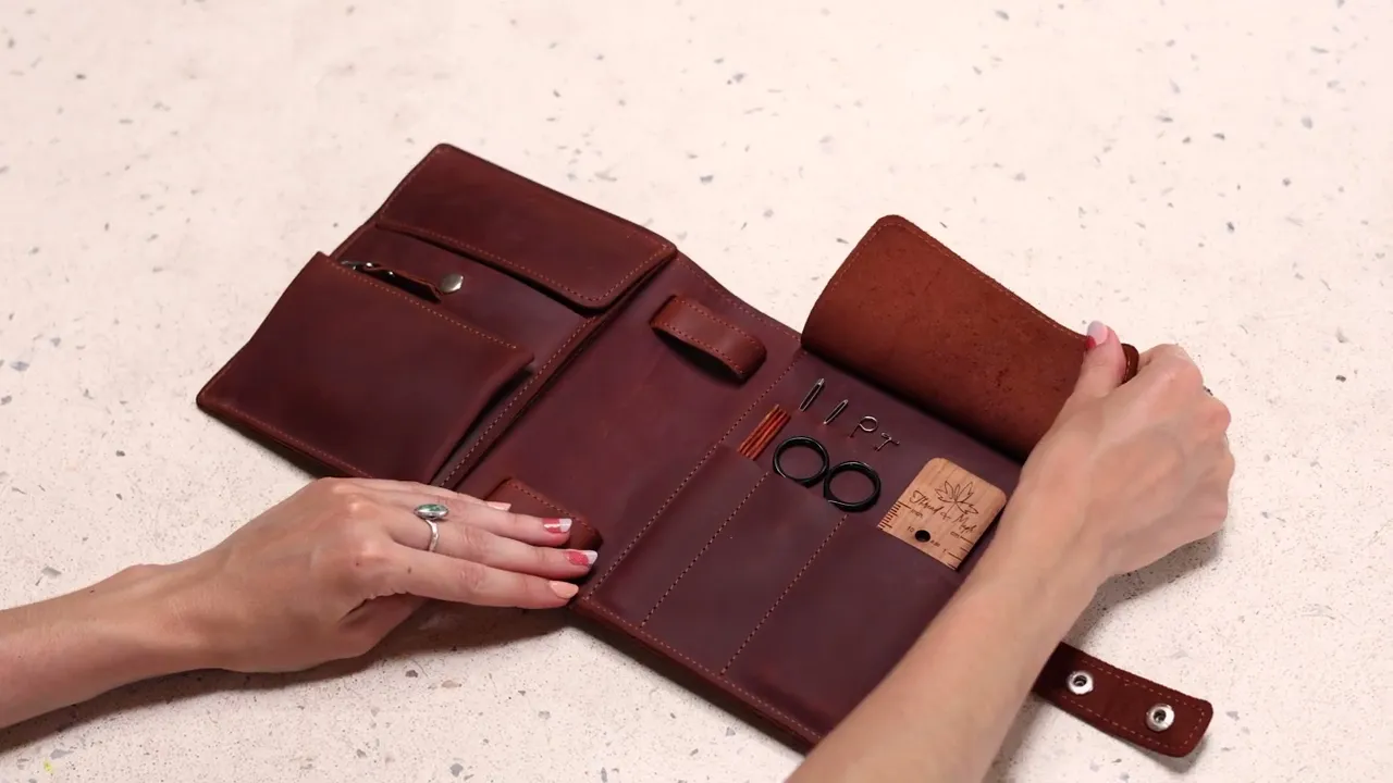 It’s handcrafted in Ukraine from genuine leather, and each slot is clearly embossed with both US and metric sizes to help you grab the right needles at a glance and keep your sets neatly together.