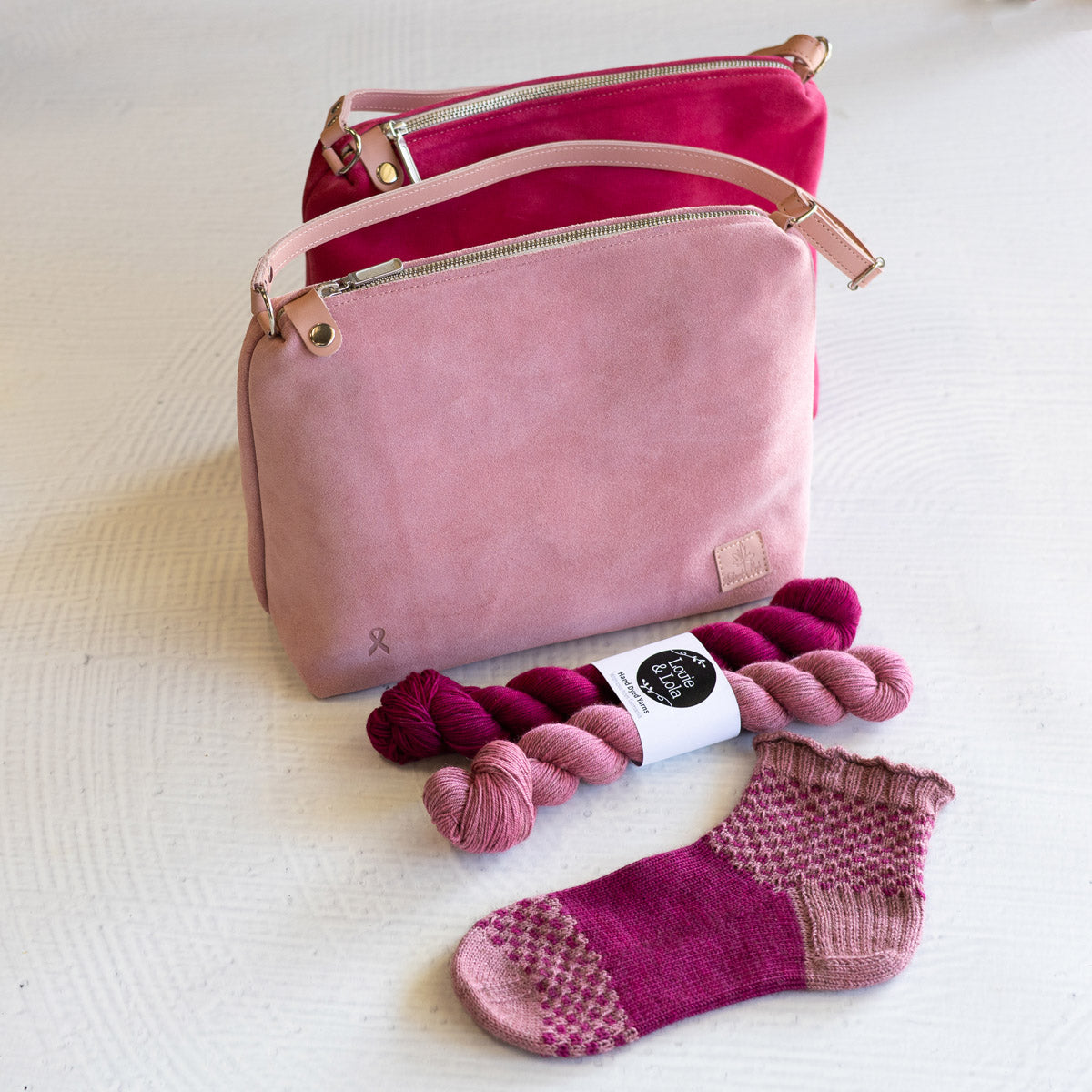 This year, we've created a brand new sock-a-licious bundle featuring a new T&M suede project bag in two colors, brand new sock pattern from Tracie Millar and a pair of coordinating skeins from Louie & Lola Yarns. Bundles are $165CAD/$150USD and will be available for sale on Thursday, October 30th at 12pm EDT. We will also have some matching optional add-ons, including a new DPN/Circulars Cozy and Sidekick Pouch for notions that clips onto the bag!