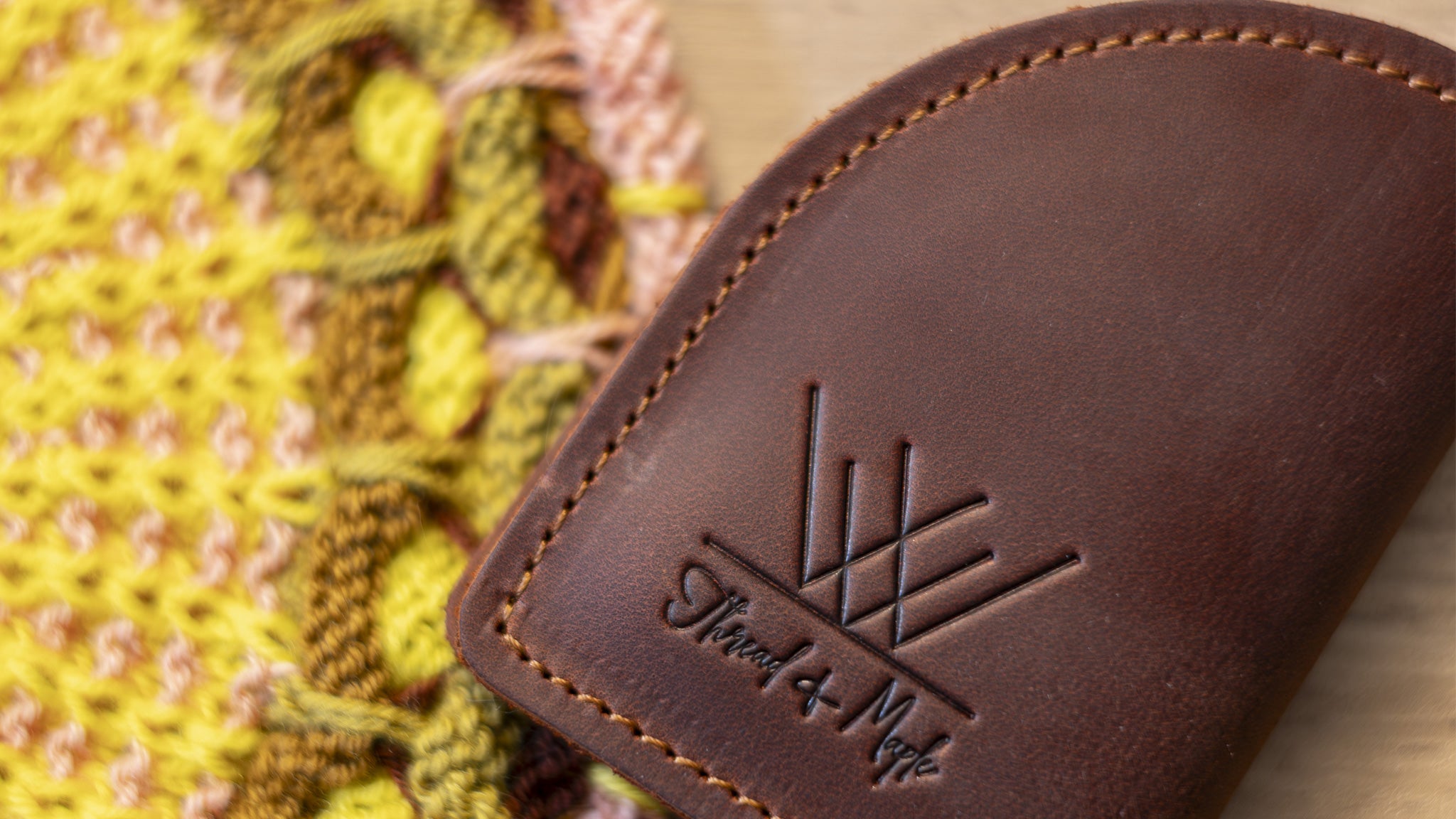A compact leather sheath that keeps your sock WIP tidy and tangle-free. It fits needles from 4" to 6" and works beautifully with DPNs, Flexi-Tips, or Magic Loop. Two openings allow you to clip in your sock and neatly coil circulars, while a small handle lets you hang it inside your Flow Bag.