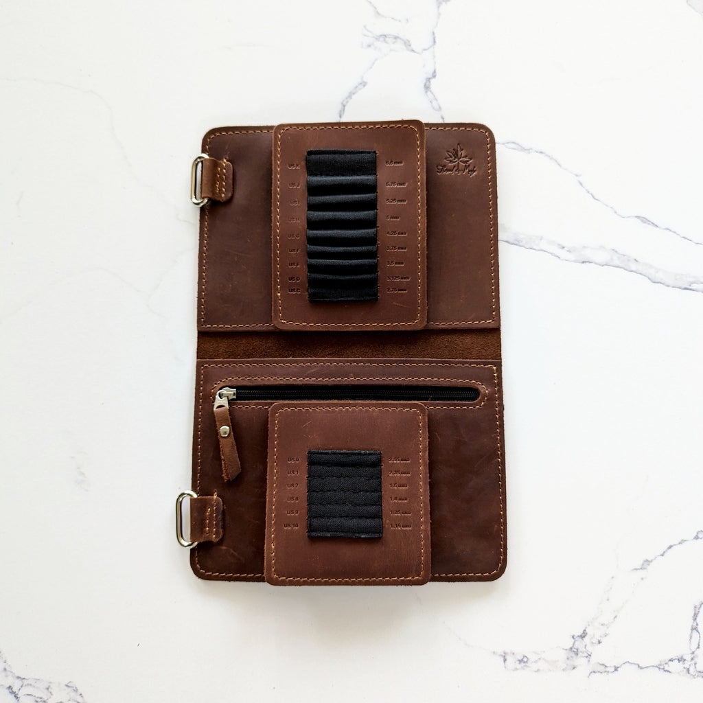 Each case features Velcro tab needle bands tailored to fit your Susan Bates crochet hooks, with meticulously crafted slots that securely hold each hook. Every slot is labeled with both US and metric sizes, making it easy to find the right hook for your project. The Velcro tabs are interchangeable and replaceable, allowing your case to adapt as your collection growsâensuring a lifetime of use.