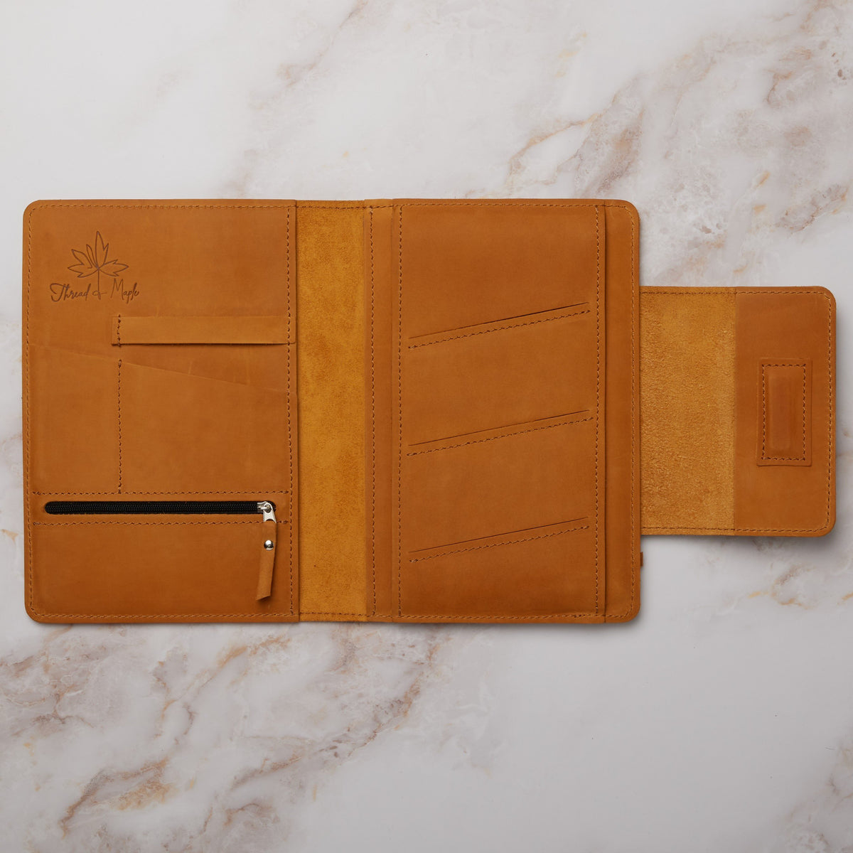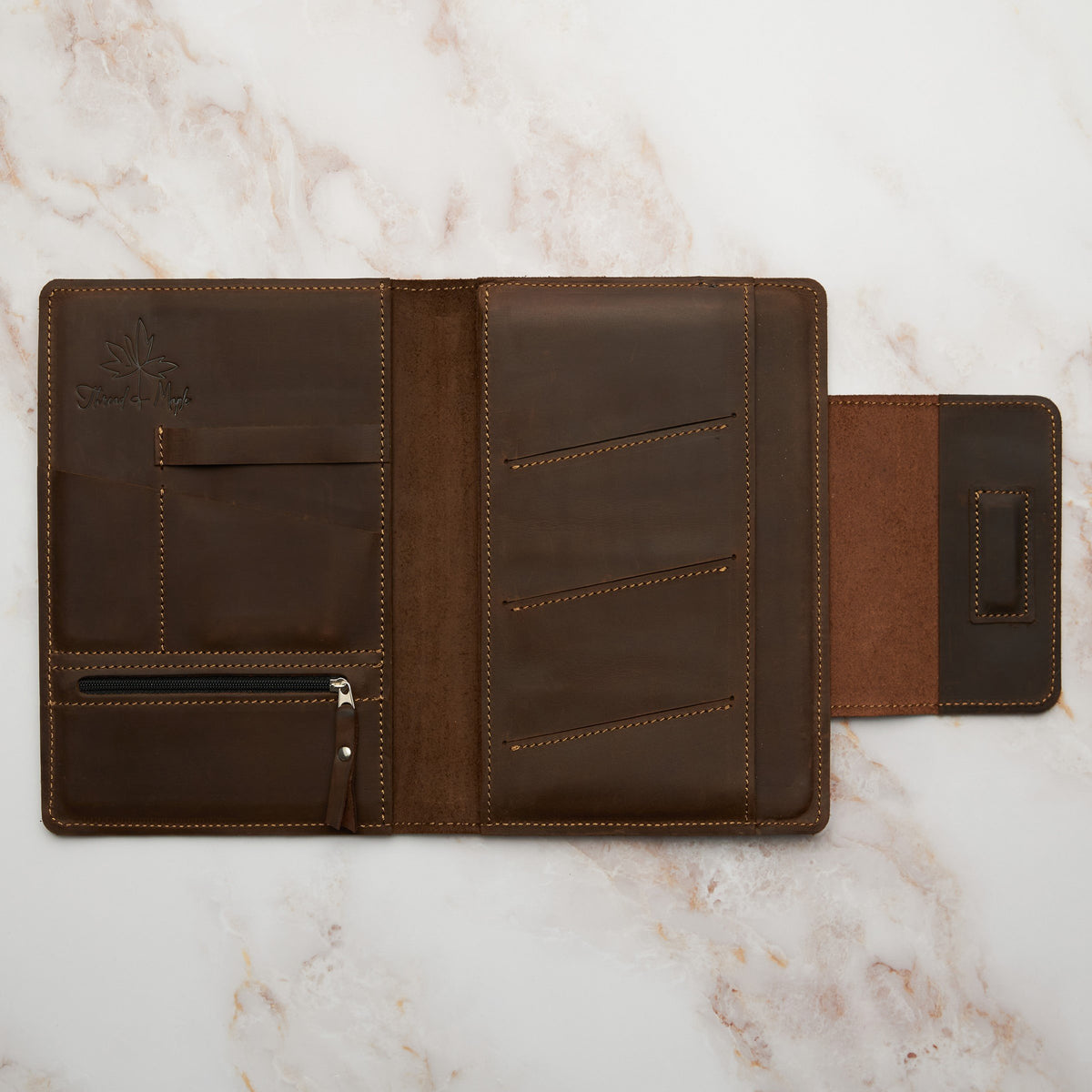 Unit price perCreate order from chaos with this beautiful organizer folio. Handcrafted from soft genuine leather, we designed it for storage versatility, be it for knitting, work, study or personal use. Designed to fit an A5 notebook, phone and mini tablet, it promises to keep your analogue and digital tools elegantly organized.