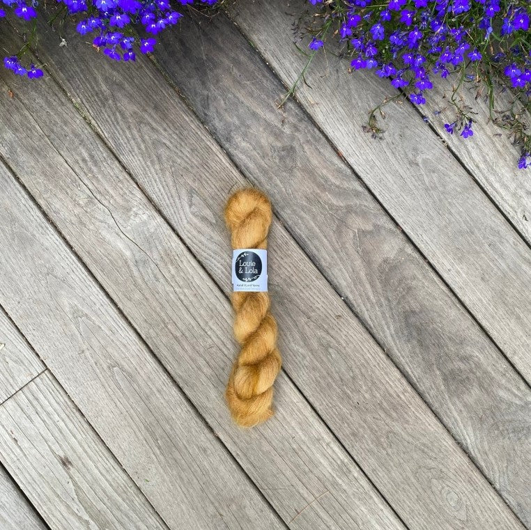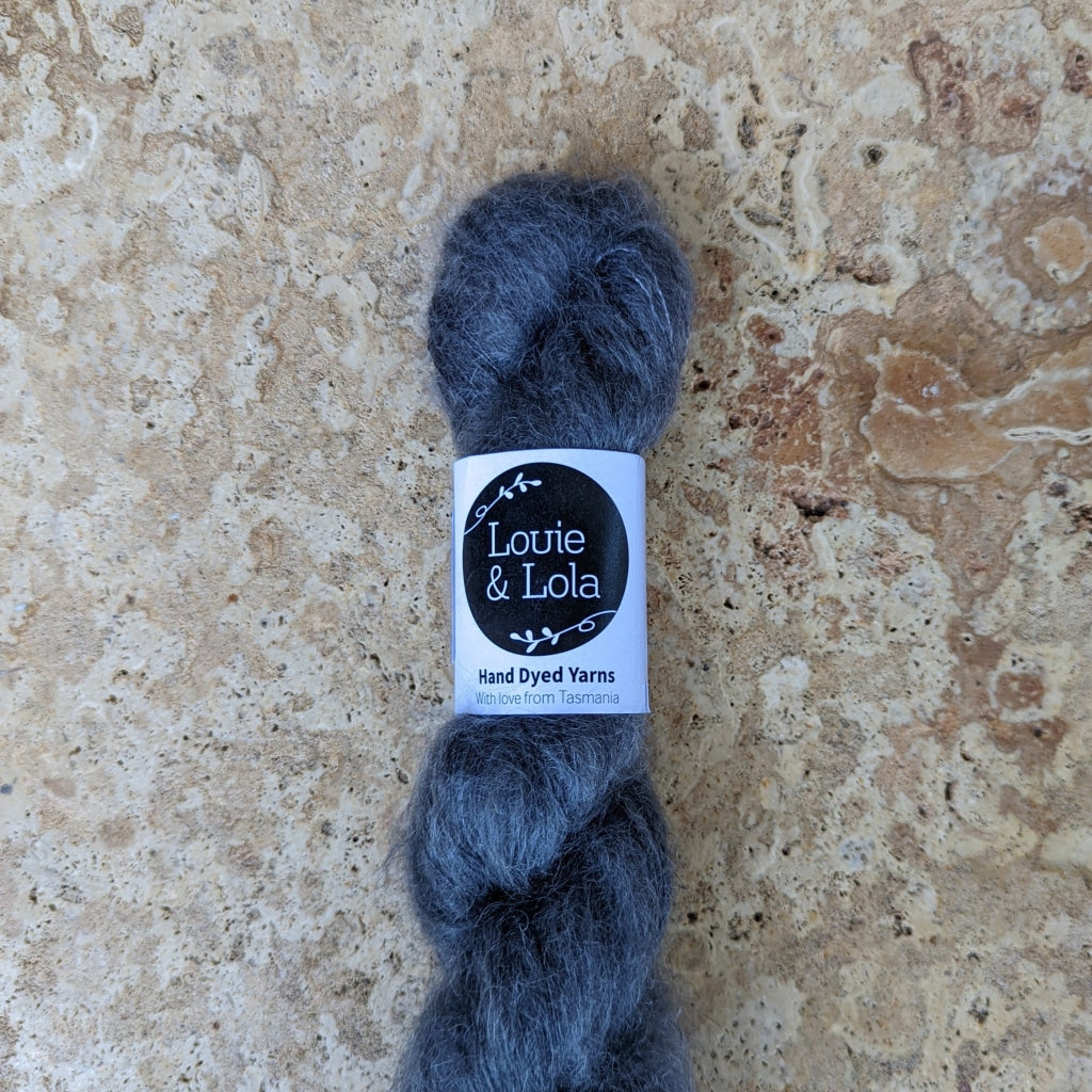 Hand-dyed in Tasmania 72% Kid Mohair, 28% Mulberry Silk.