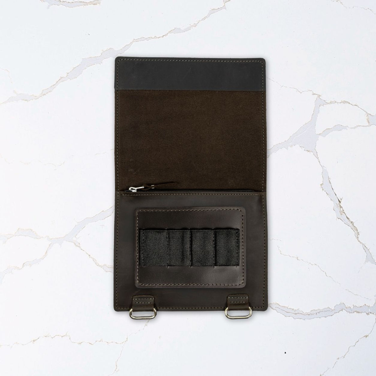 Inside, you’ll find an ample zippered pocket for extra notions and bits. A single Velcro tab with elastic loops holds your Furls crochet hooks snugly in place. It’s not labeled with hook sizes, but fits any 4 Furls hooks, and can be easily replaced as your collection evolves. All velcro tabs are interchangeable with our full-format Needle and Crochet Binder Pages, so you can easily shift your most-used tools to the Mini Binder when crafting on the go. Thoughtfully designed and made to last, it’s a flexible, travel-friendly storage solution that grows with you.