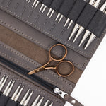 Unit price perTiny, yet mighty, these stainless steel mini scissors make the perfect companion for knitting on the go. Now sold separately due to popular demand! Despite their minuscule size, measuring just 2 3/4 inches, they have large holes for a comfortable grip. They fit perfectly into our On the Go wallet and come in a T&M drawstring cotton pouch when purchased on their own.