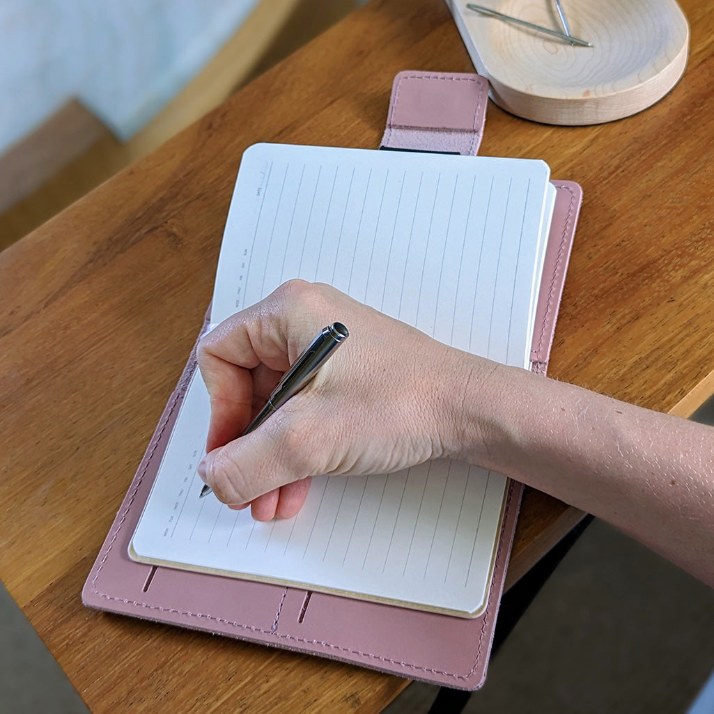 Unit price perThis tiny ballpoint pen fits perfectly in the Maker's Mini Folio and Notions Page. It twists open and has a clip for securing it to a journal cover. It writes in black colour ink with a 0.5mm wide line. Measuring at only 9.8*0.7 cm, keep one in each of your purses and project bags to never be caught without one.