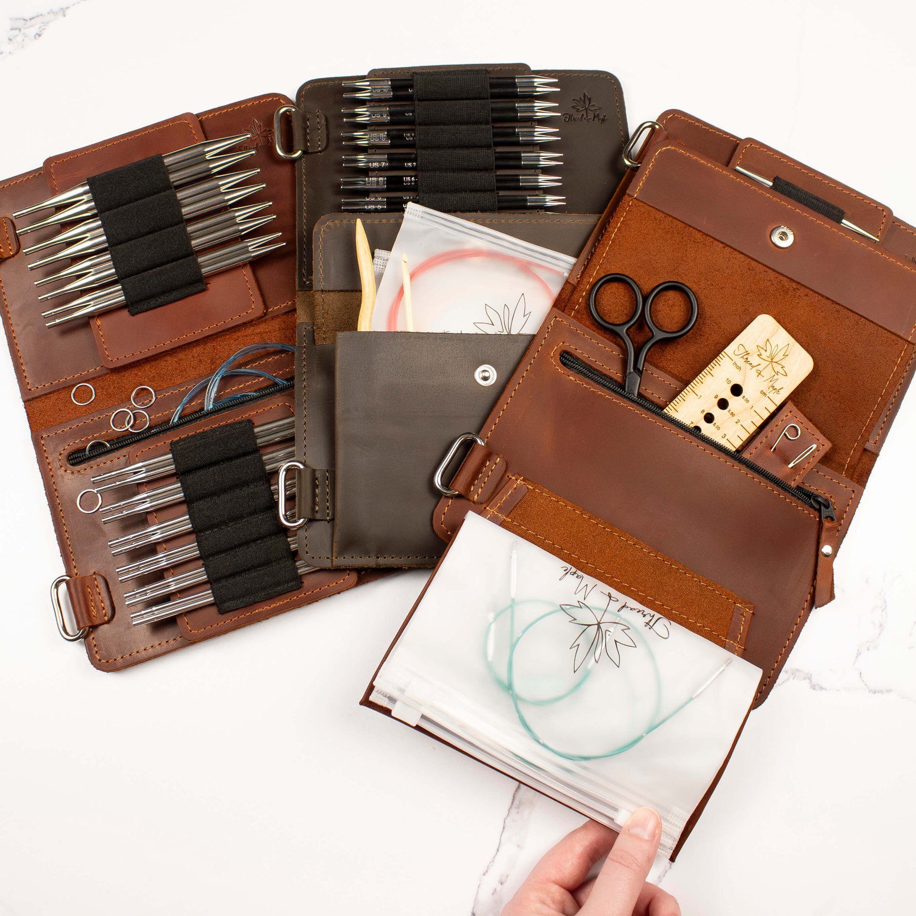 ✔️ Multiple pockets for fixed circulars, DPNs, crochet hooks, or specialty needles—pair with our leather needle size markers (optional add-ons) for easy labeling.