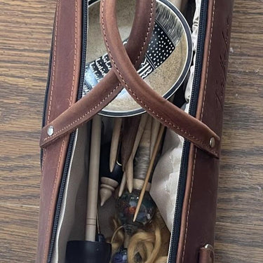 Unit price perMeet the The Collectif Spin Bag, a beautifully handcrafted spindle case designed in collaboration with knitwear designer Andrea Mowry to inspire and support every step of your spinning experience. Thoughtfully made with the same attention to detail and quality that defines all Thread & Maple creations, this elegant bag is both practical and meaningful—a tribute to the fiber arts and the makers who carry on its rich tradition.