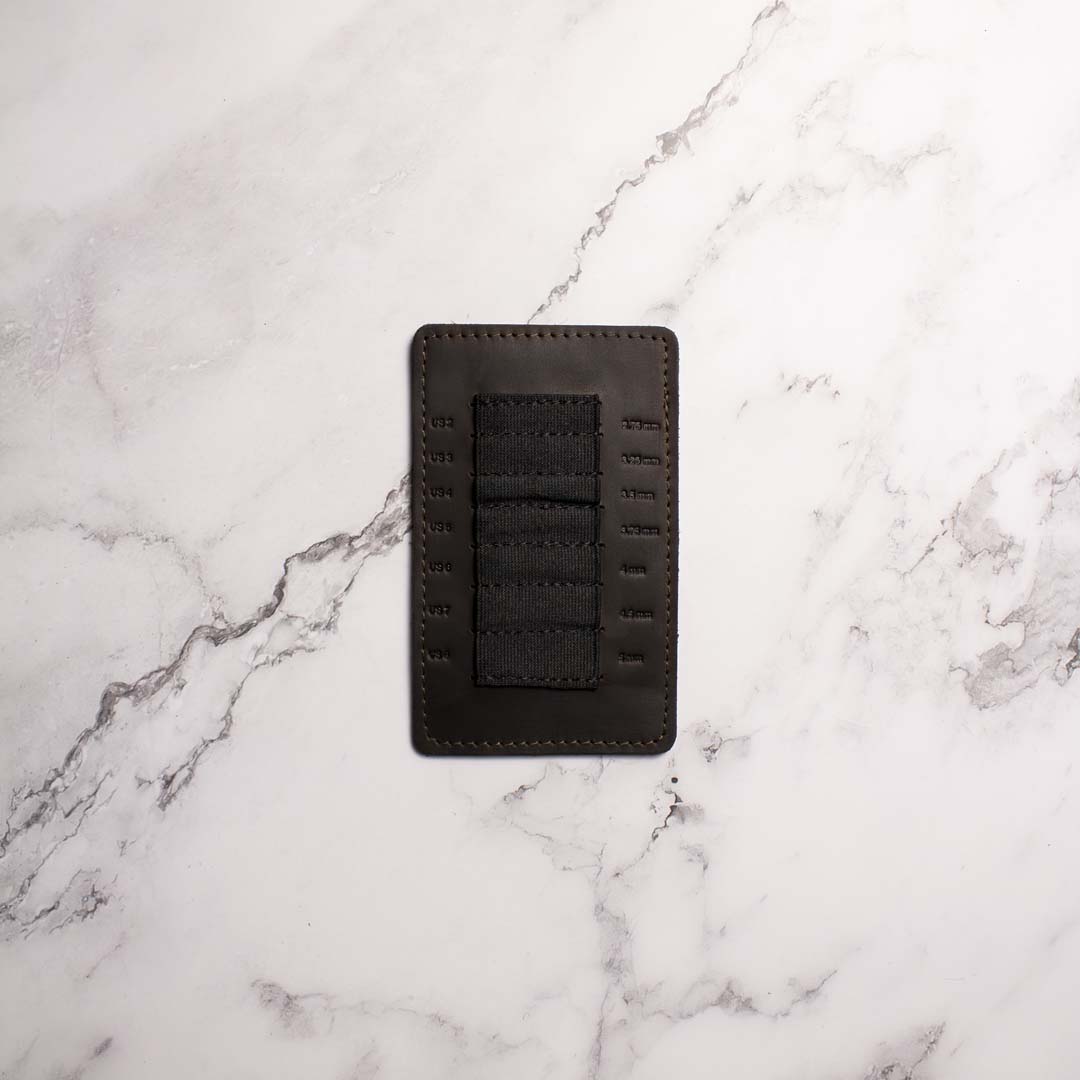 This tab fits 7 interchangeable knitting needle tip pairs and has the following needle sizes embossed: