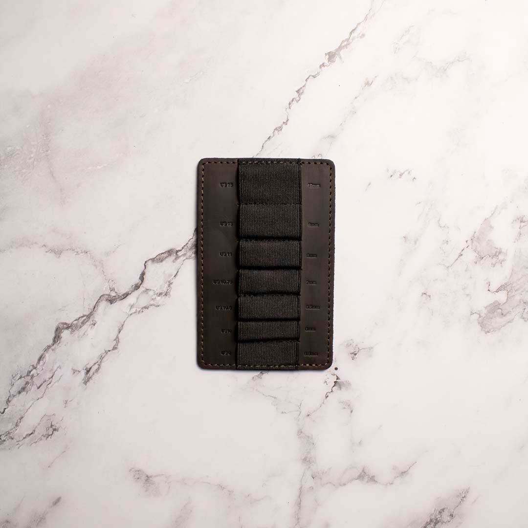 This tab fits 7 interchangeable knitting needle tip pairs and has the following needle sizes embossed: