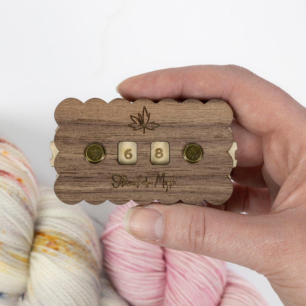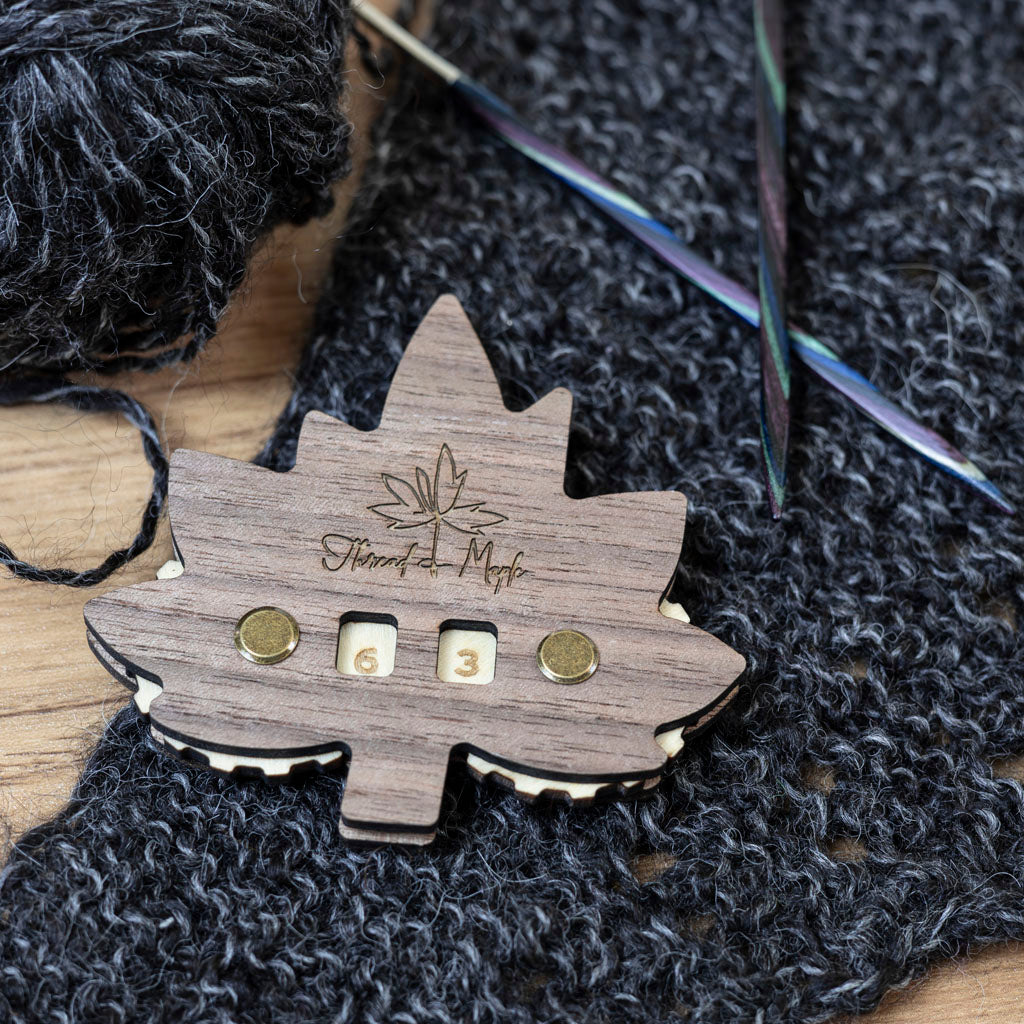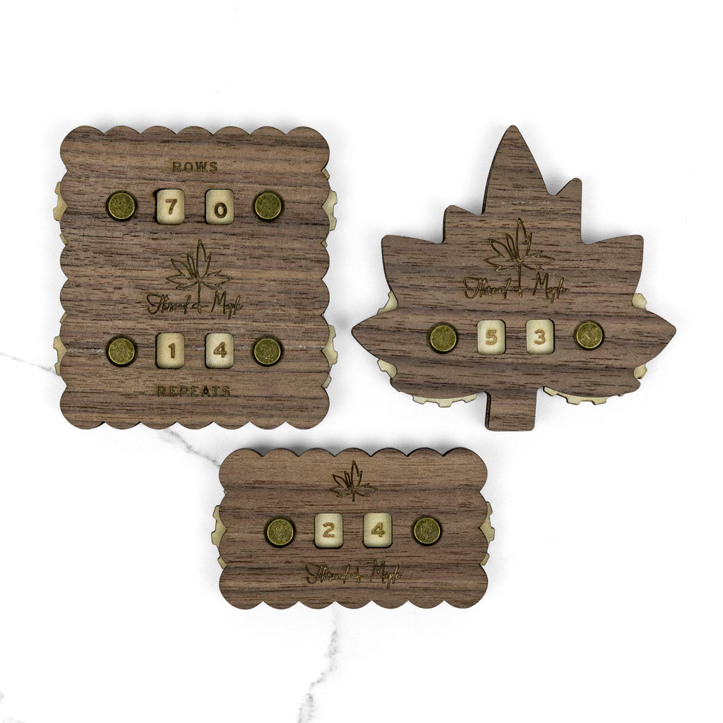 The double counter is ideal for more intricate patterns, allowing you to track both rows and repeats so you can settle into your stitching with confidence. The single counter offers a wonderfully compact option, slipping easily into a Notions Zip or Catch-All page and making a perfect companion for on-the-go making. For a special touch, the customized maple leaf counter adds a bit of Thread & Maple personality—something playful and uniquely yours to bring along to retreats, road trips, or wherever your project takes you.